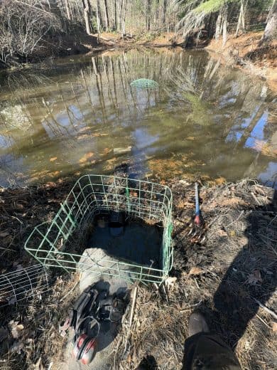 The fence is constructed so that beavers can dam against it, but excludes them from the culvert so it remains unobstructed. After the fence is installed a Pond Leveler is installed through the fence and the pipe outlet is set at the desired pond level. Even though the beavers can dam against the fence to hold back some water, the size of the pond they can create by damming on the fence is limited by the Pond Leveler pipe system. If heavy storm runoff temporarily exceeds the pipe capacity water will flow over the dam on the fence and through the unblocked culvert just as it would have if there were no beaver damming.